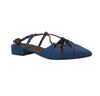 - modello mules aperto sia su punta che su tallone, tomaia in simil pelle effetto glitter; disegno a due fascette unite ad incrocio da una serie di tre cerchi; tacco basso flat di cm.2, pianta in pelle leggermente imbottita per favorire la calzata, fondo in gomma;