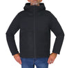 - tessuto esterno lato frontale e cappuccio: 100% poliammide, nylon lavorazione ripstop superleggero e lucido; sulla parte rimanente del capo tessuto: 90% poliammide - 10% elastane, tessuto tecnico stretch a mano morbida e calda, idrorepellente e resistente allo strappo; fodera: 100% poliammide; imbottitura: 80% piumino d'anatra - 20% piuma d'anatra, pesantezza invernale, adatto alle temperature medio-fredde con un comfort termico ottimale tra i 10° e i-5°; polsini su maniche e bordo girovita in tessuto liscio elasticizzato;